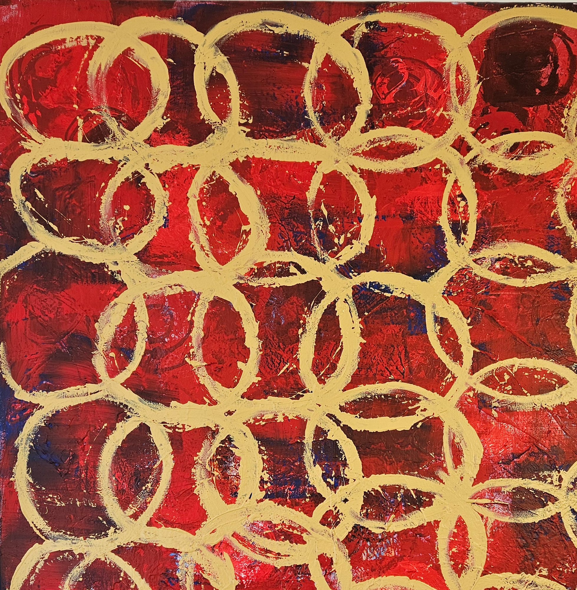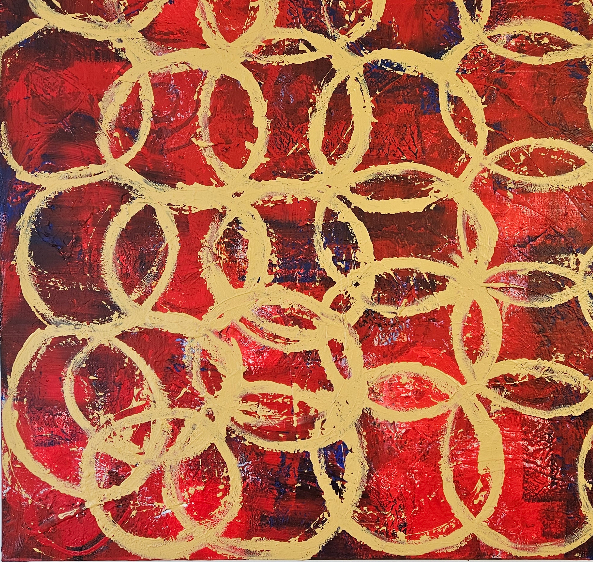 Dans cette œuvre, j’ai voulu capturer l’énergie vibrante et la passion brûlante à travers ces spirales ivoire sur fond rouge intense. Chaque cercle raconte un mouvement, une danse récurrente, symbolisant la vie qui pulse autour de nous. Ce tableau rayonne, apportant chaleur et dynamisme à votre intérieur, éveillant émotions et inspiration à chaque regard.