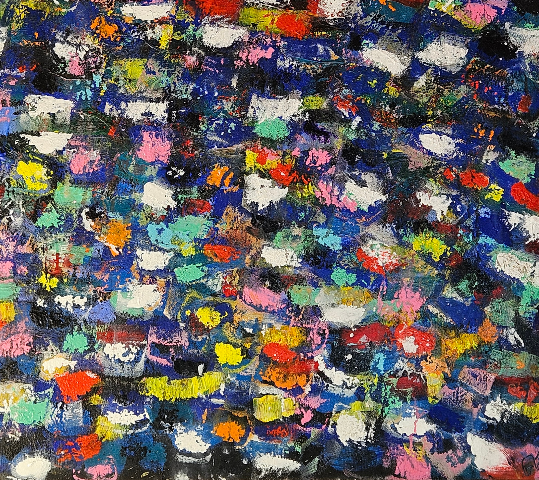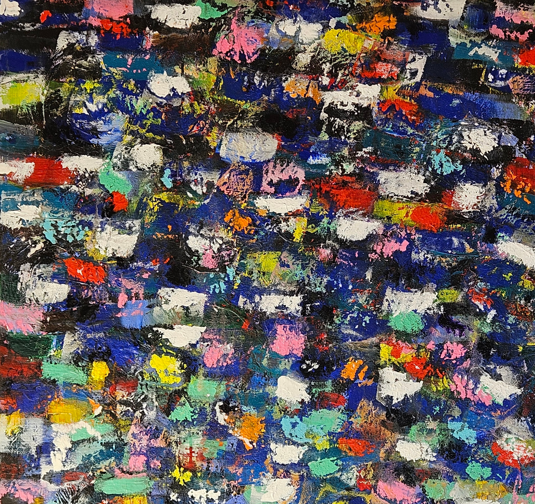 Dans cette œuvre, j’ai choisi l’acrylique pour capturer une explosion d’émotions à travers des touches vibrantes et dynamiques. Chaque coup de pinceau évoque une énergie effervescente, comme une danse colorée qui éclaire et anime l’espace. Je souhaite que cette peinture apporte à votre intérieur une sensation de mouvement constant, de joie intense et un souffle de liberté créative.