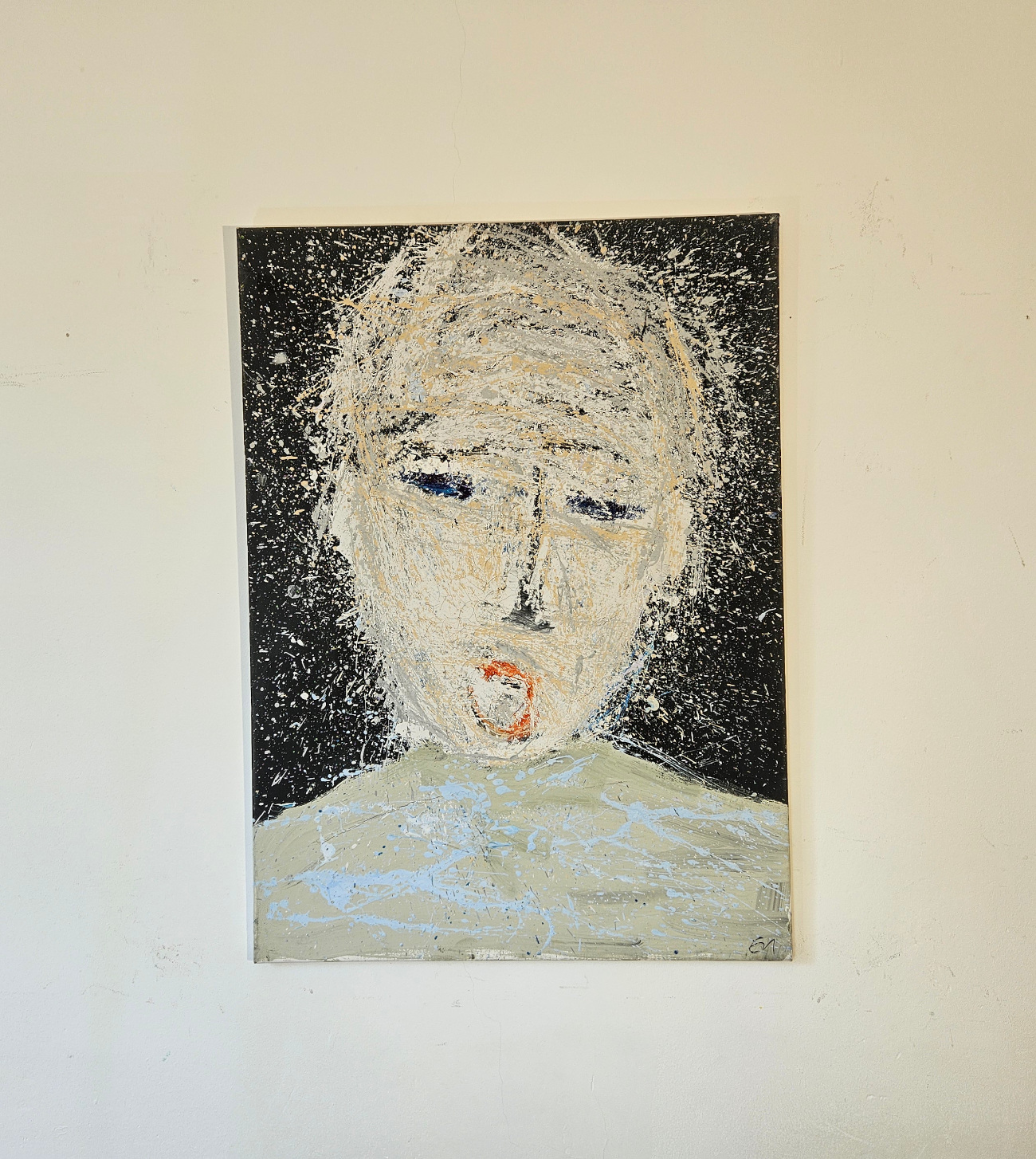 Dans cette œuvre, j’ai voulu capturer la vulnérabilité et l’innocence d’un visage enfantin avec une simplicité naïve et sincère. La texture et les touches d’acrylique expriment une émotion brute, presque chantante. Cette peinture apportera à votre intérieur une énergie douce et authentique, une lumière intérieure qui parle directement au cœur.