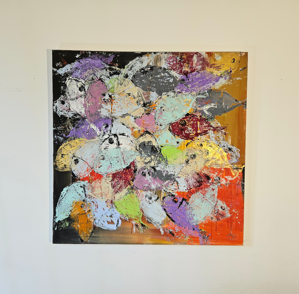 Dans cette œuvre, j’ai voulu capturer l’effervescence colorée d’un banc de poissons, mêlant le figuratif à l’abstrait pour exprimer la liberté et le mouvement. Les touches d’acrylique vives et texturées créent une énergie vibrante qui animera tout espace, apportant une sensation de vie et de légèreté, presque comme une danse sous-marine éclatante et joyeuse.