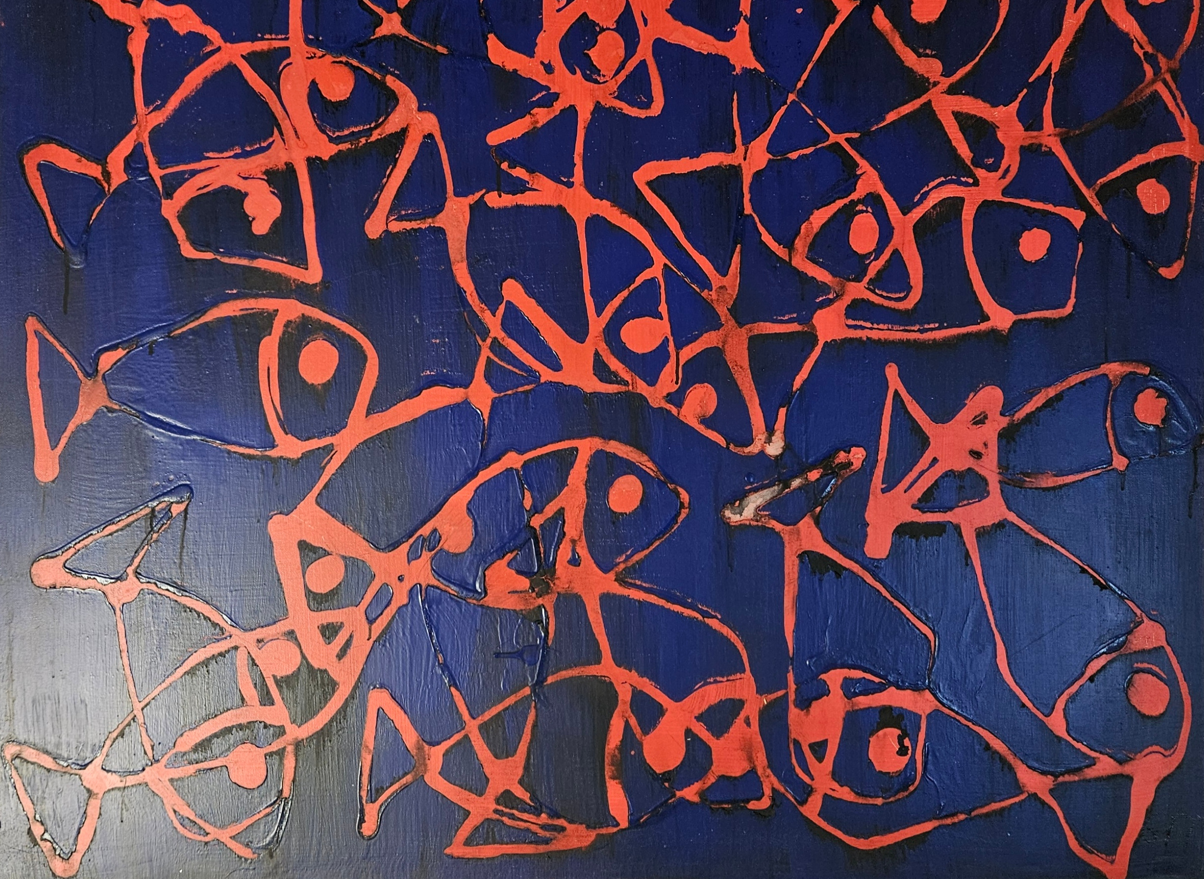 J’ai voulu capturer l’énergie vibrante et mouvante des poissons rouges, ces créatures dynamiques et libres. Avec l’acrylique, j’ai joué sur le contraste entre le bleu profond et le rouge éclatant pour exprimer un mouvement incessant et une vie intérieure intense. Cette œuvre apportera une touche de vitalité et de mystère, éveillant la curiosité et la joie dans votre espace.