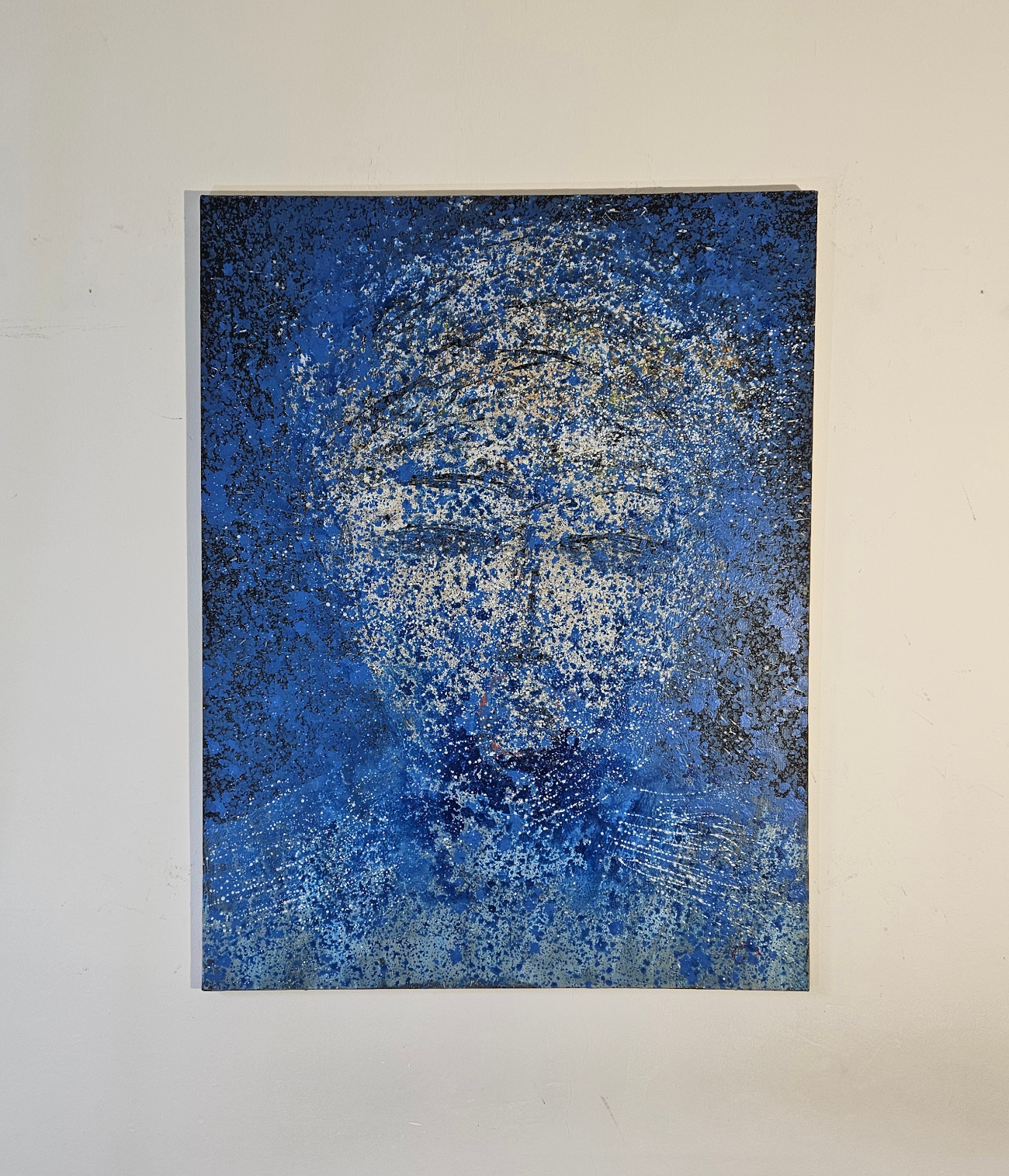 Dans cette œuvre, j’ai voulu exprimer une émotion profonde, presque méditative, à travers ce visage bleu mystérieux. La texture et les éclats d’acrylique créent une atmosphère à la fois douce et intense, mêlant naïveté et abstraction. Elle apportera à votre espace une énergie apaisante, invitant à la réflexion et à la contemplation intérieure.