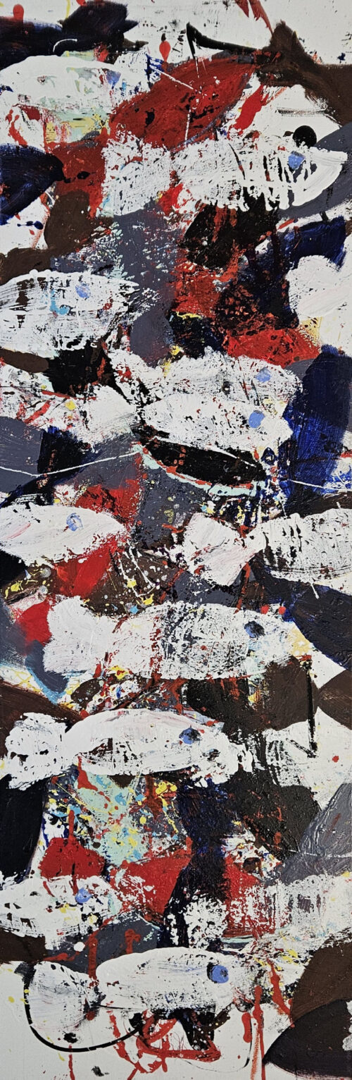 Poissons blancs, rouges bleus, peinture acrylique sur toile 100x100cm
